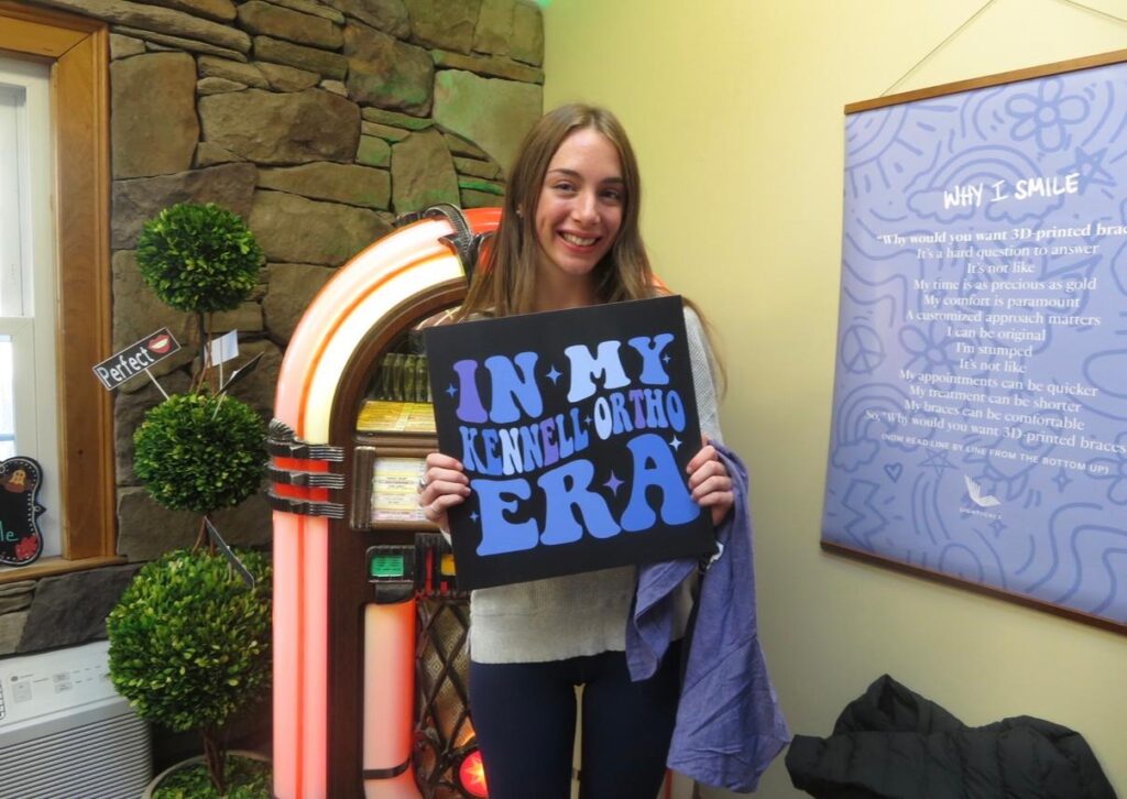 We also had new photo-op signs made! We have "In my Kennell Ortho Era", "In my Braces Era", "Feelin' Groovy with my KOsmile." Next time you are in the office you will have to check them out! We made LIMITED TIME ONLY "In My Kennell Ortho Era" T-shirts. Get yourself one before they sell out (You can trade in your points to get one or when you start treatment you can pick one as your prize!)